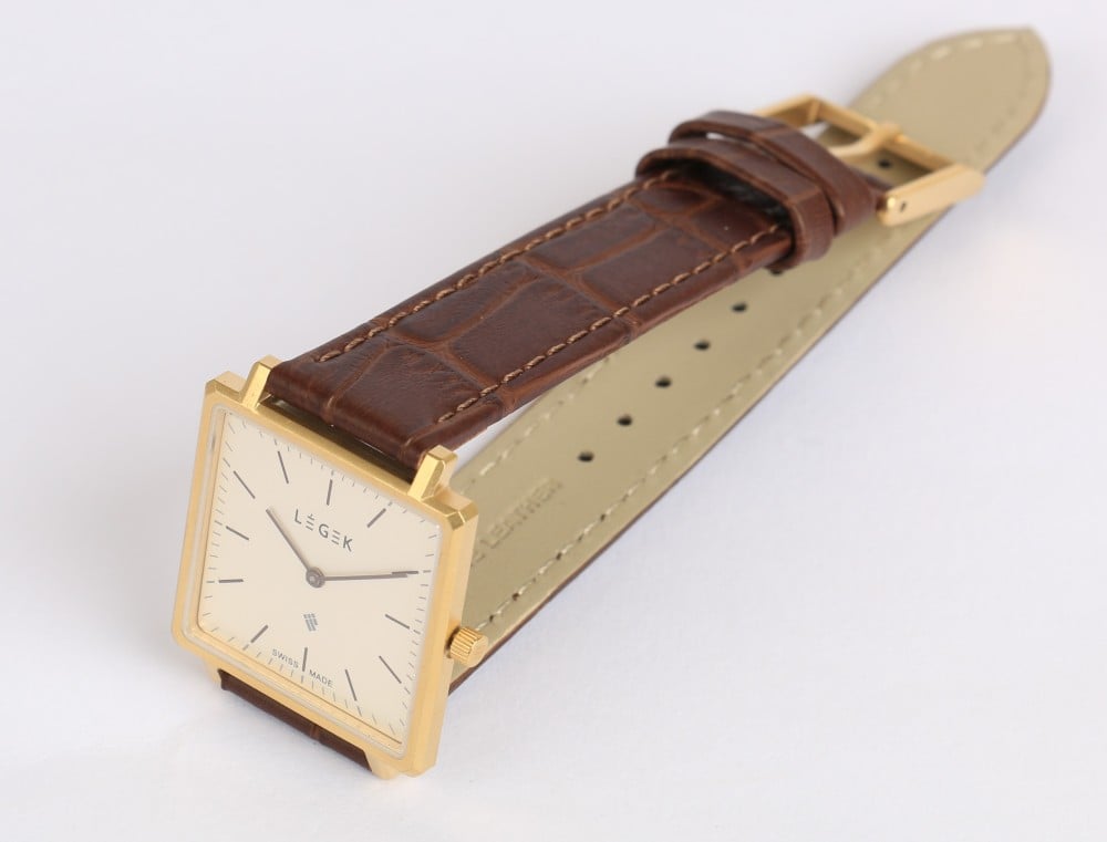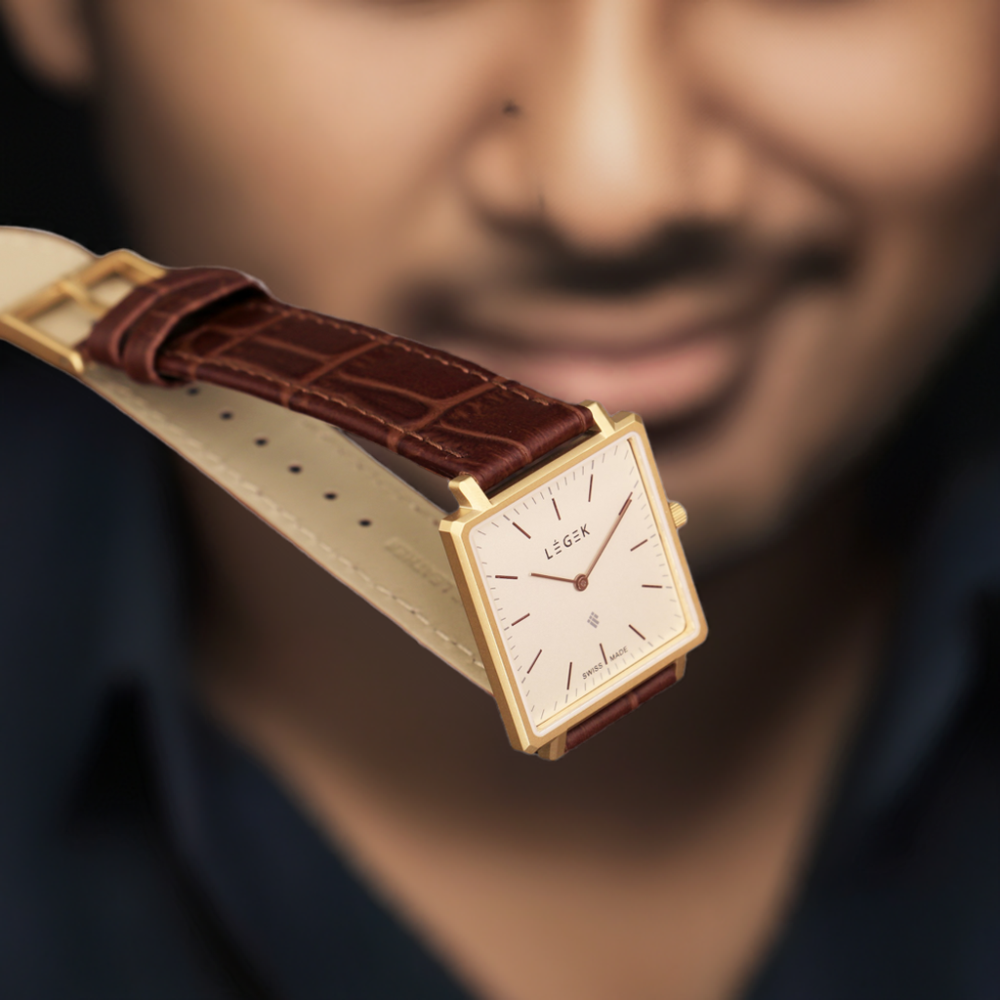 تقدم ساعة لاجيك السويسرية للرجال تصميمًا مميزًا يوازن بين الكلاسيكية والعصرية، مما يجعلها قطعة مثالية للرجل الذي يعشق التفاصيل الفاخرة. يتميز هيكلها المربع المصنوع من السانستيل الذهبي اللامع بأناقة راقية تعكس الحرفية السويسرية.